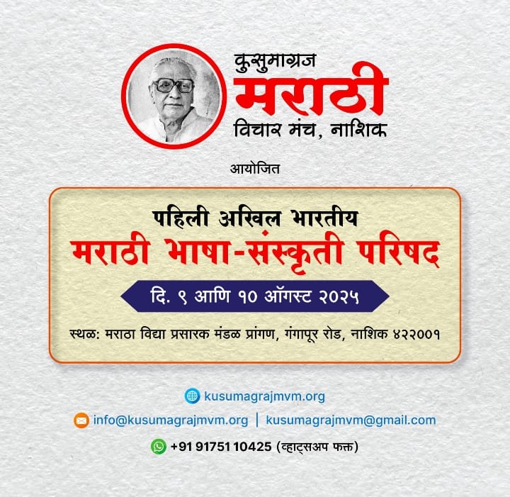 शनिवार दि ९ आणि रविवार १० ऑगस्ट २०२५ रोजी पहिल्या अखिल भारतीय मराठी भाषा-संस्कृती परिषदे चे आयोजन नाशिक येथील मराठा विद्या प्रसारक समाजाच्या प्रांगणात केलेले आहे.